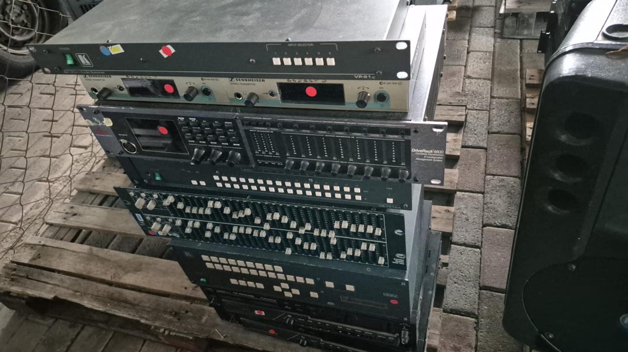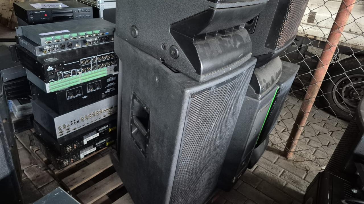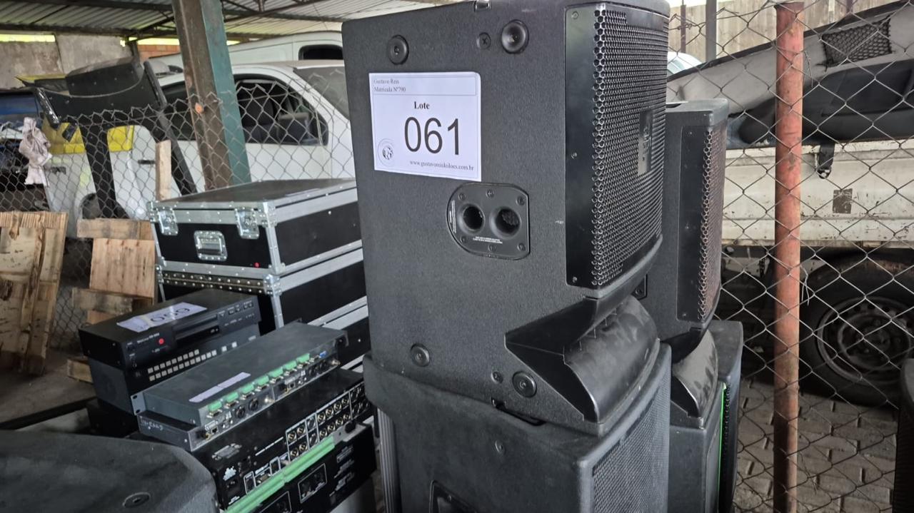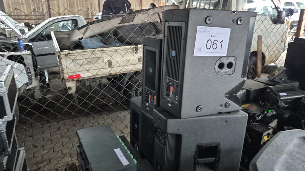 5 CAIXAS SOM, 2 BASE MICROF.,1SWITCH,1EQUALIZADOR,1PROCESSADOR,2COMPACT DISC | Cód do leilão: 810 / 6/2026 Diversos
